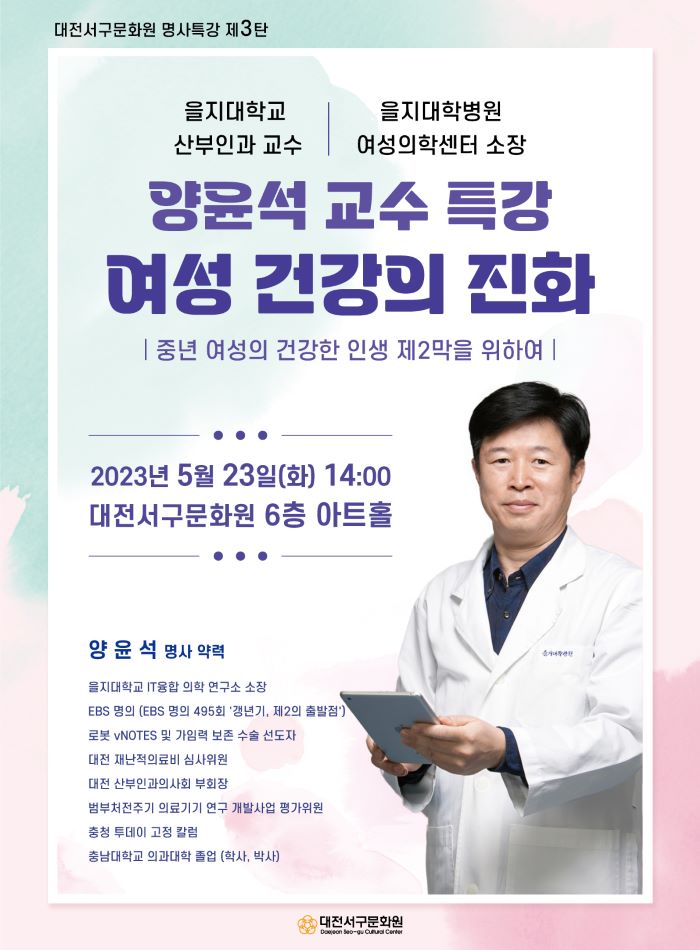이번에 을지대학교 산부인과 교수이자 을지대학병원 여성건강센터 소장이신 양윤석 교수님의 특강을 준비하였습니다.